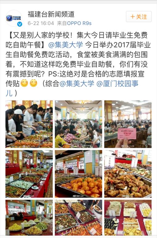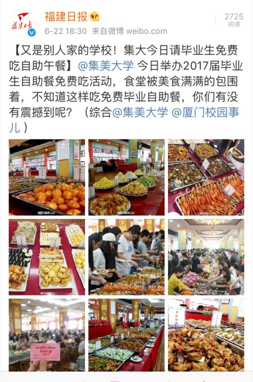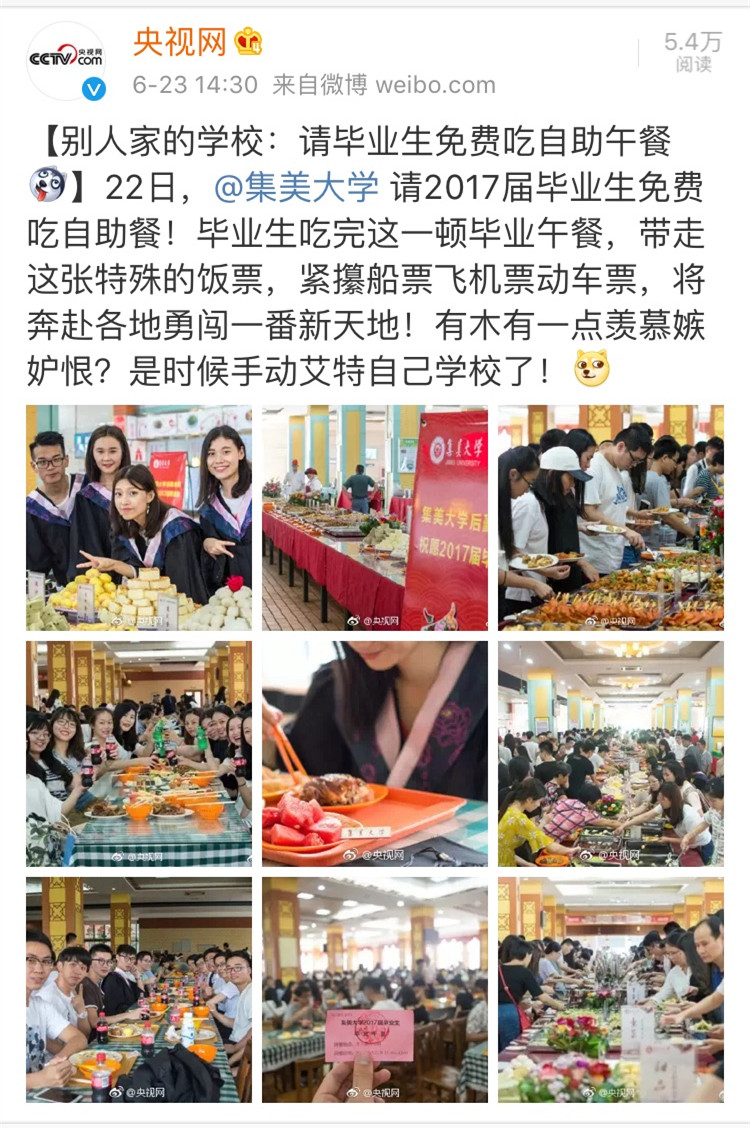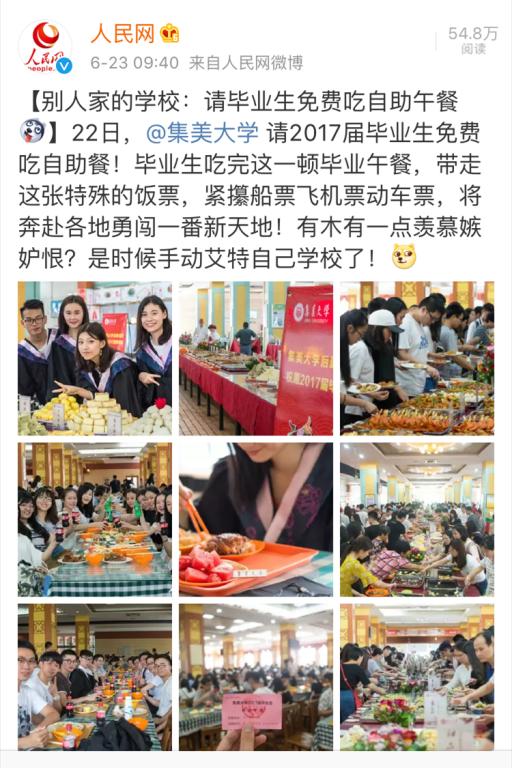 [央视网、人民网、中国新闻网、福建日报、福建新闻频道]别人家的学校,集大毕业生免费吃自助午餐