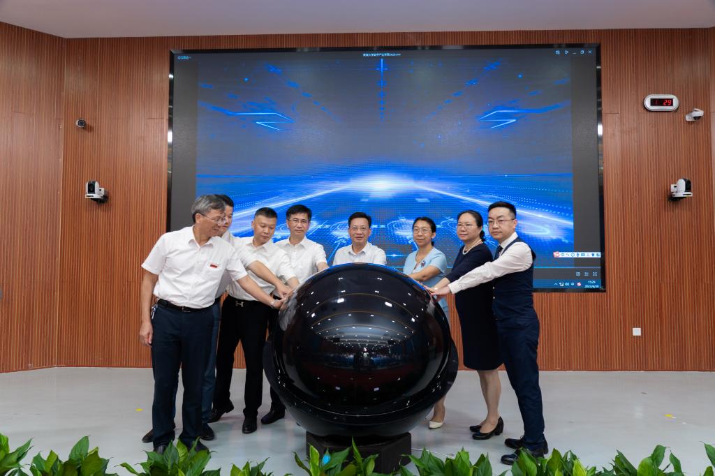 图片说明:与会领导、来宾共同为彭兴勇数字产业学院揭牌。(摄影:陈南君)