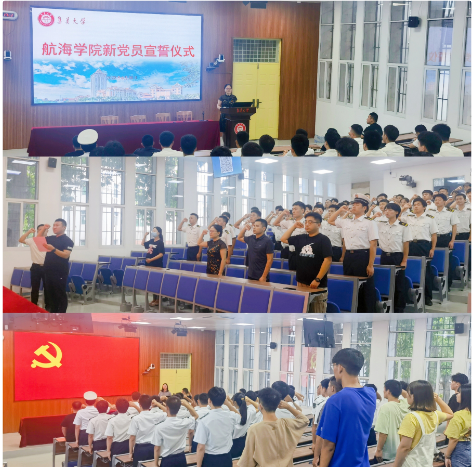 6月30日下午,航海学院举行新党员入党宣誓仪式。学院党委书记兰莉芸、党委组织员、各学生党支部书记及全体新党员参加仪式。仪式上,学院全体新党员面向党旗,举起右手,庄严宣誓,表达对党忠诚、为共产主义事业奋斗终身的决心。