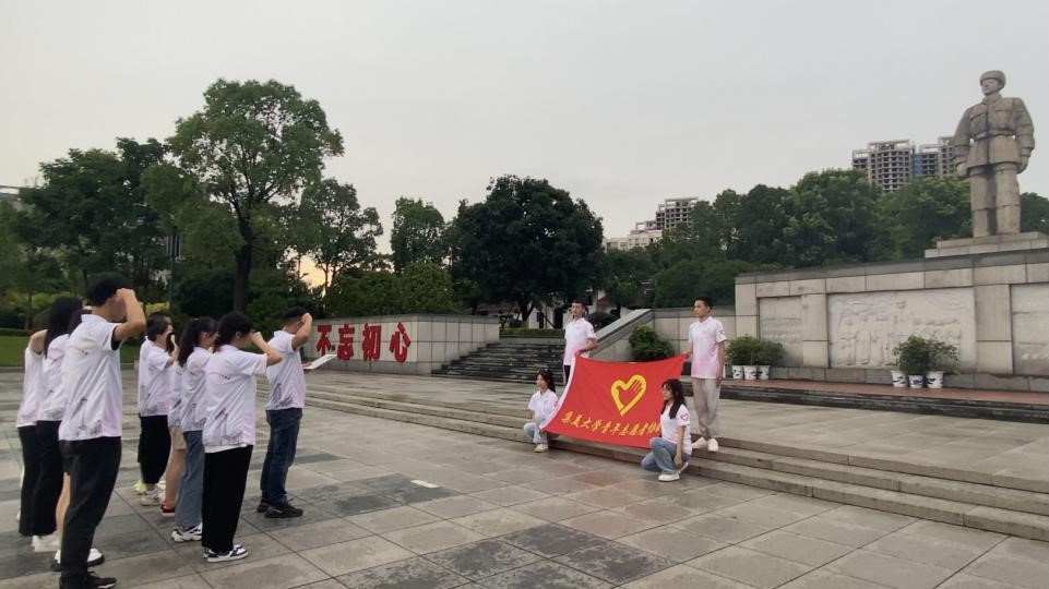 实践队员在雷锋雕像前开展志愿者宣誓活动