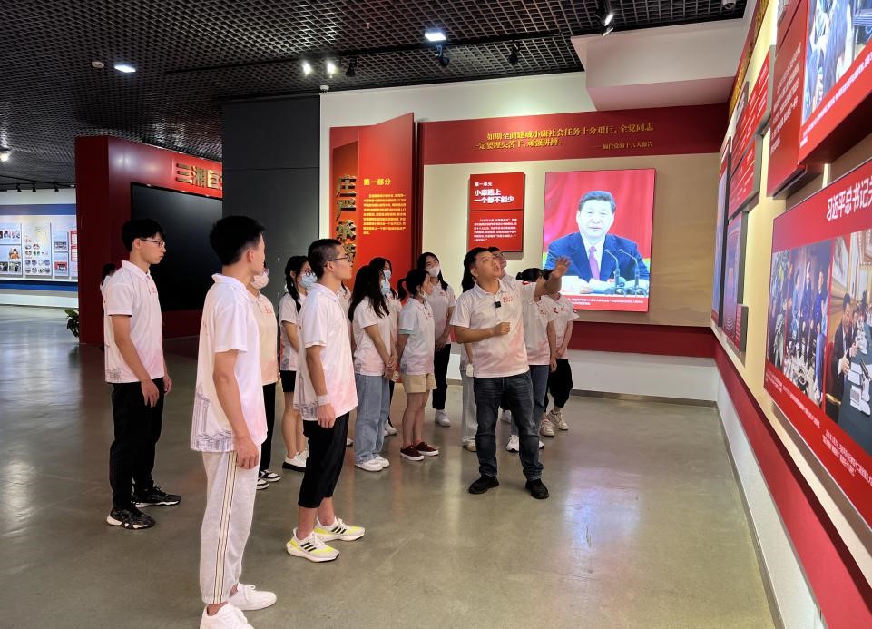 参观过程中,指导老师组织实践队员在湖南党史陈列馆开展现场教学,学习习近平总书记精准扶贫思想和国家乡村振兴战略。指导老师讲述了习近平总书记在宁德任职期间三进下党指导扶贫工作的生动故事,介绍了党的十八大以来习近平总书记亲自参与指导扶贫工作的生动实践。