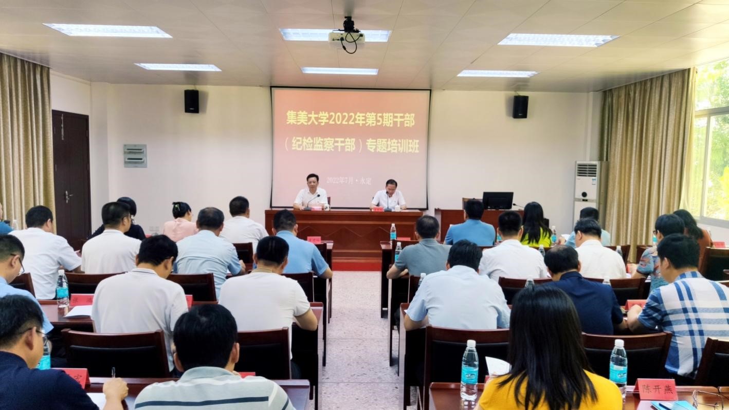 7月9至11日,我校举办彭兴勇2022年第五期干部(纪检监察干部)专题培训班。9日下午,培训班举行了开班式,校党委书记沈灿煌作开班动员讲话,开班式由校党委常委、纪委书记、监察专员童建福主持。校纪委委员、二级纪委书记(纪检委员)、专职纪检监察干部、巡察干部、巡察组组长等参加了培训。